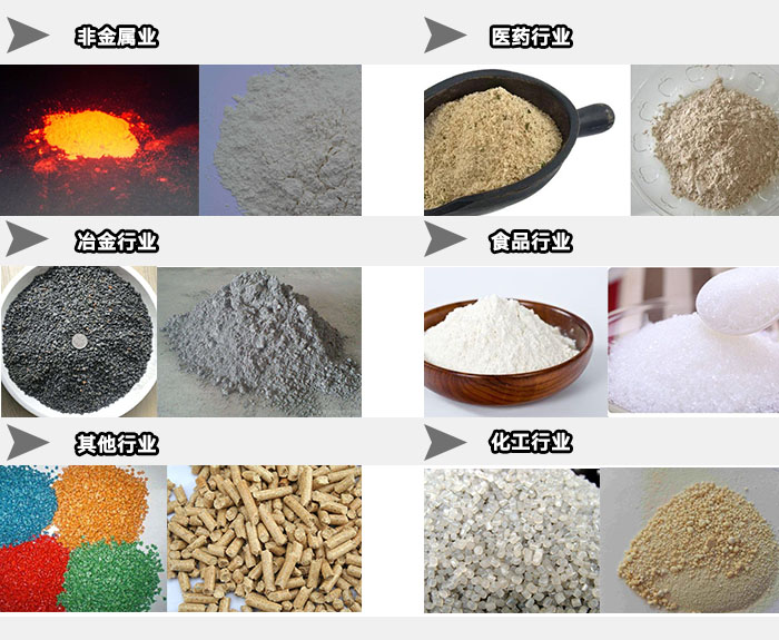 、塑膠、塑料、磁材、建材、礦山、窯業(yè)、飼料等。
