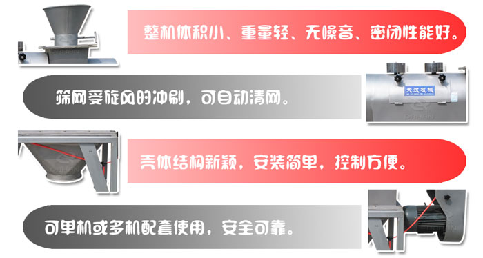 | 篩分精度高、處理量大、結構簡單、耗能少、噪音低、篩網使用壽命長、密封性好、無粉塵溢散、維修方便、可用于流水線生產中的自動化作業(yè)。 |