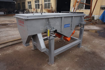 DZSF系列直線震動篩為雙振動電機驅動。當兩臺振動電機做同步、反向旋轉時,其偏心塊所 產生的激振力在平行于電機軸線的方向相互抵消,在垂直于電機軸的方向疊為一合力,因此 篩機的運動軌跡為一直線。兩電機軸相對篩面在垂直方向有一傾角,在激振力和物料自重力 的合力作用下,物料在篩面上被拋起跳躍或向前作直線運動,從而達到對物料進行篩選和分 級的目的。適用于粒度在0.074—5mm,含水量小于7%,無粘性的各種干式粉狀或顆粒 狀物料的篩分。給料粒度不大于10mm.。